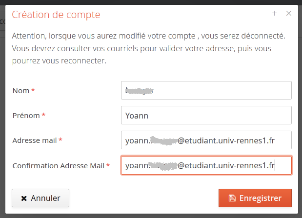 Certaines informations récupérées du logiciel de scolarité ne sont pas modifiables, si vous souhaitez apporter des corrections, il faut contacter votre scolarité.